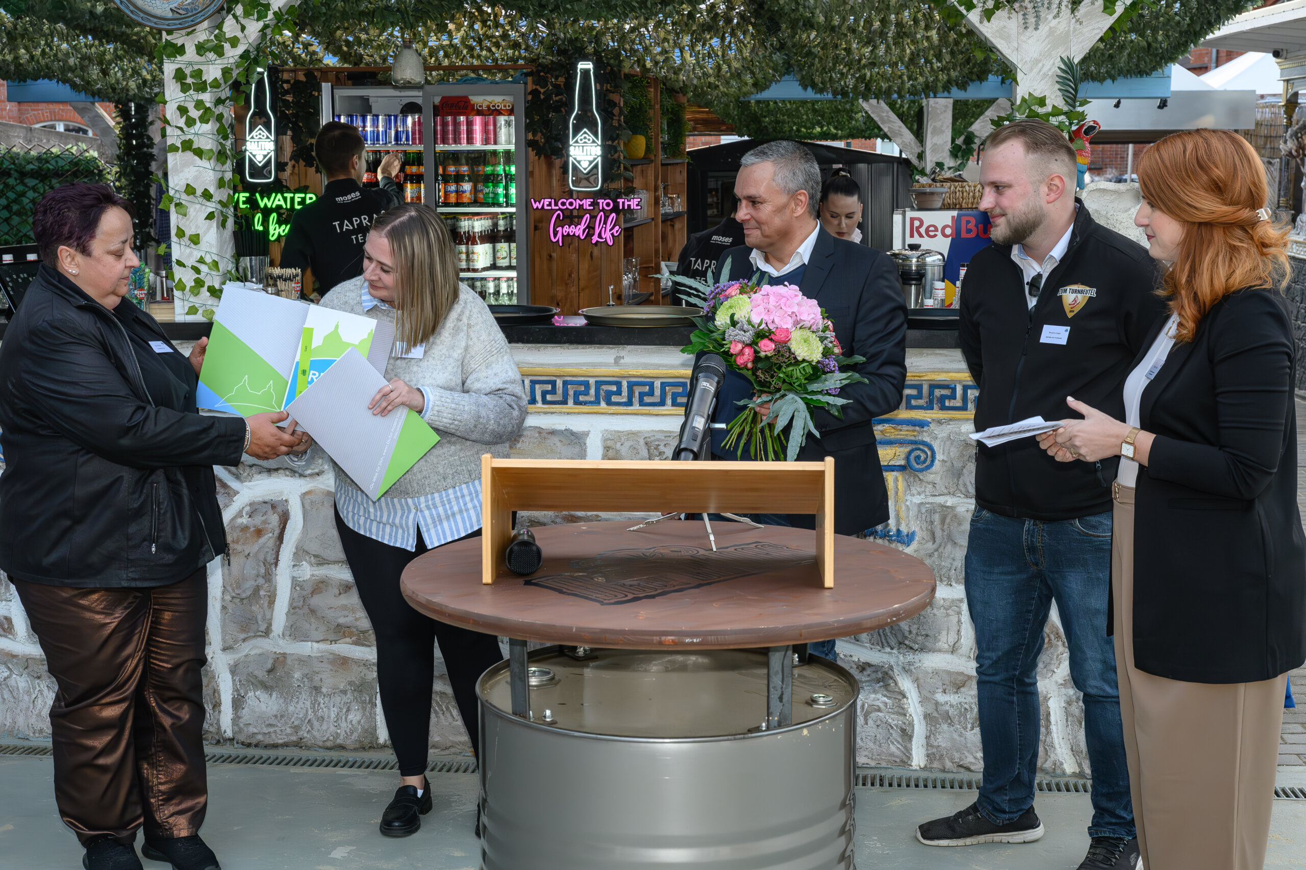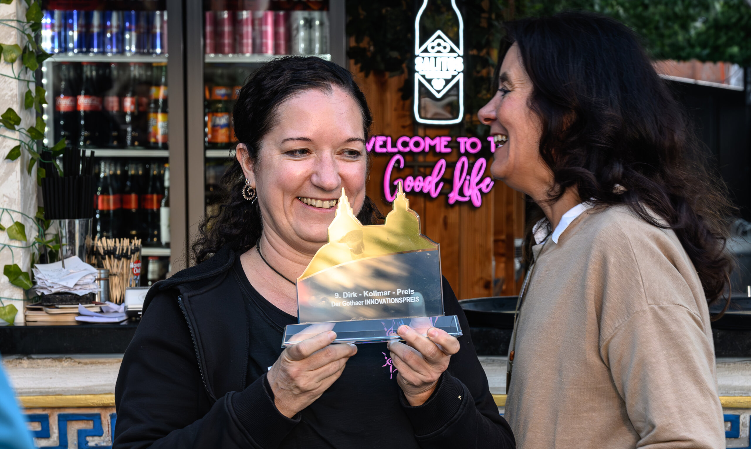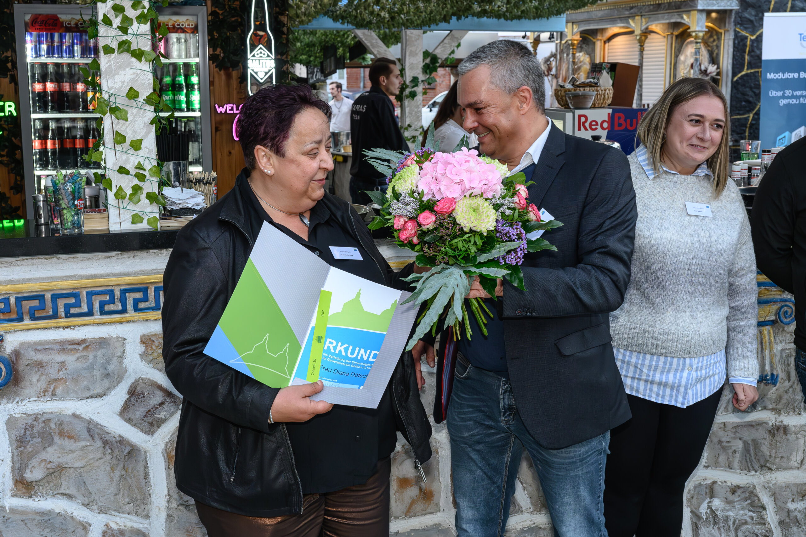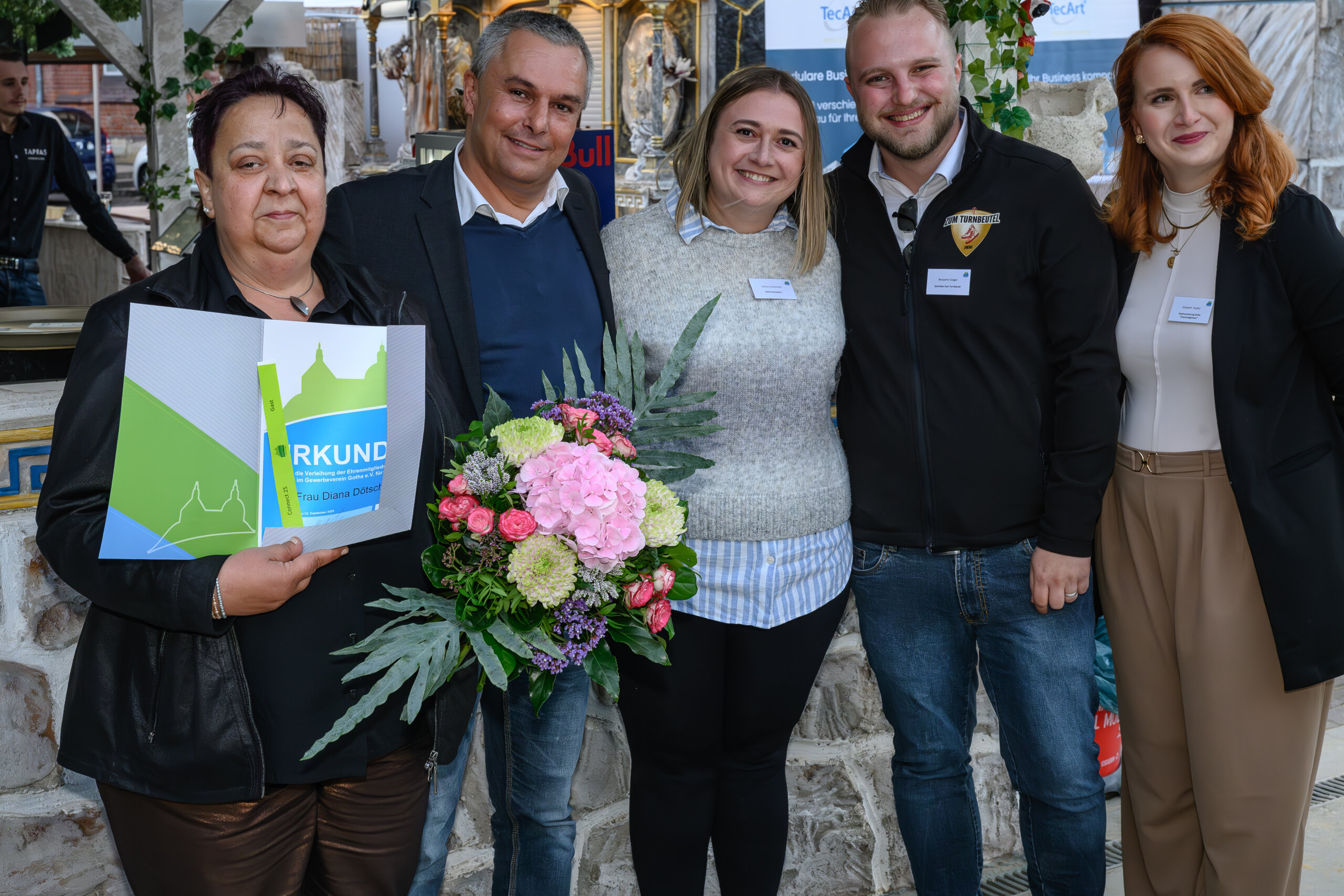 Die Laudatio hielt die Beigeordnete des Landkreises Gotha, Frau Sylke Niebur, die auch die Urkunden überreichte – unterzeichnet von Landrat Onno Eckert, Oberbürgermeister Knut Kreuch und der Gewerbevereinsvorsitzenden Darya Inochentsy.