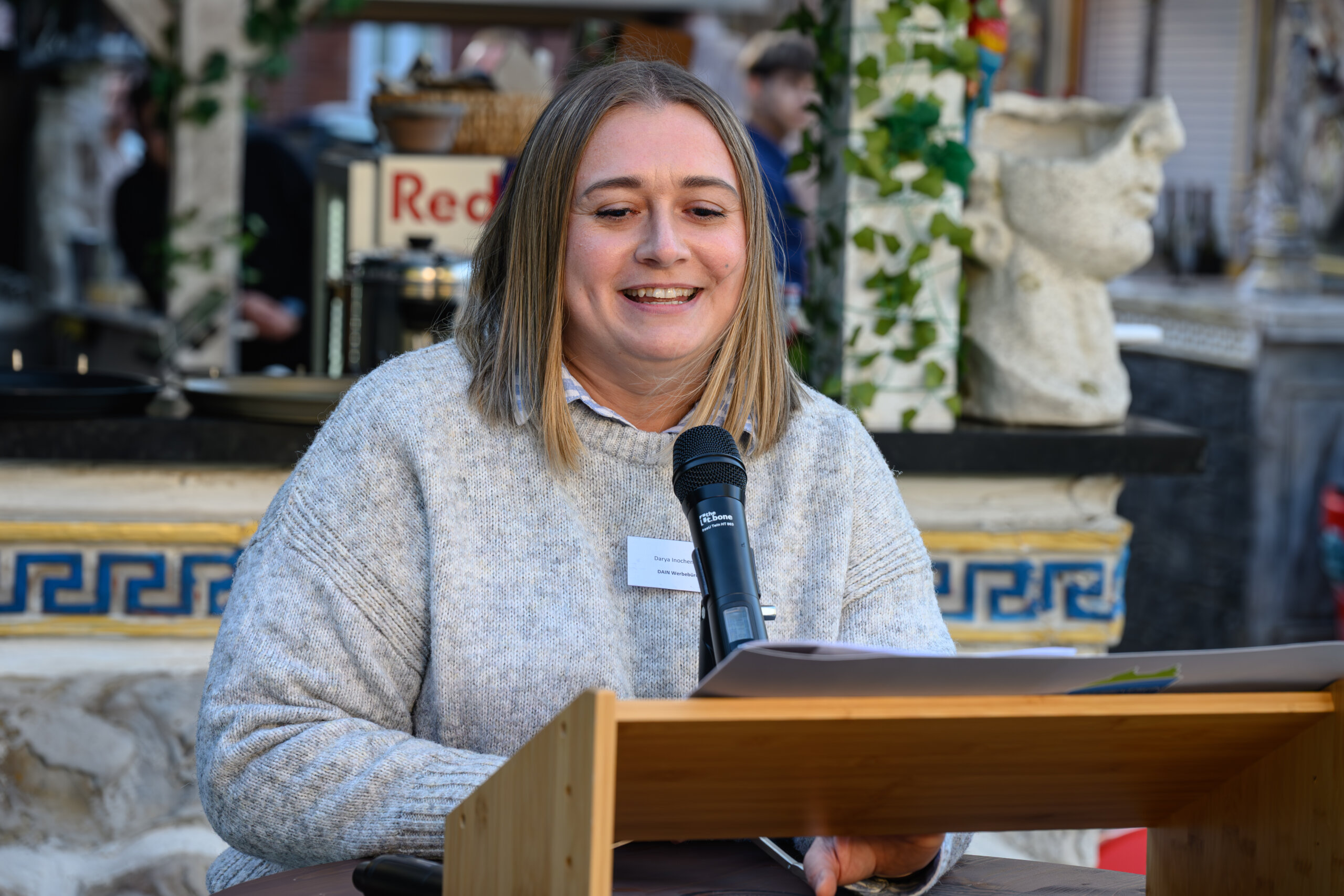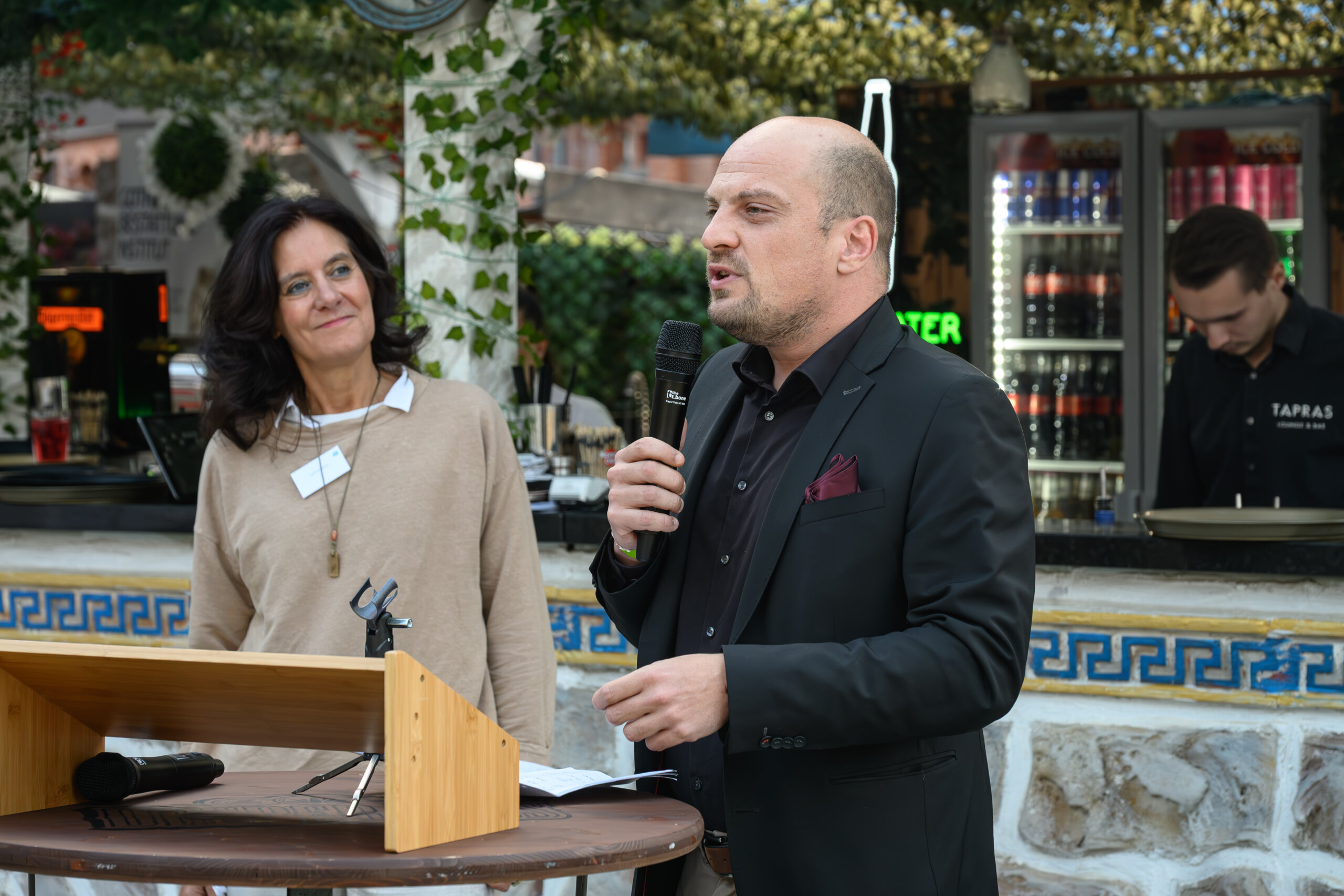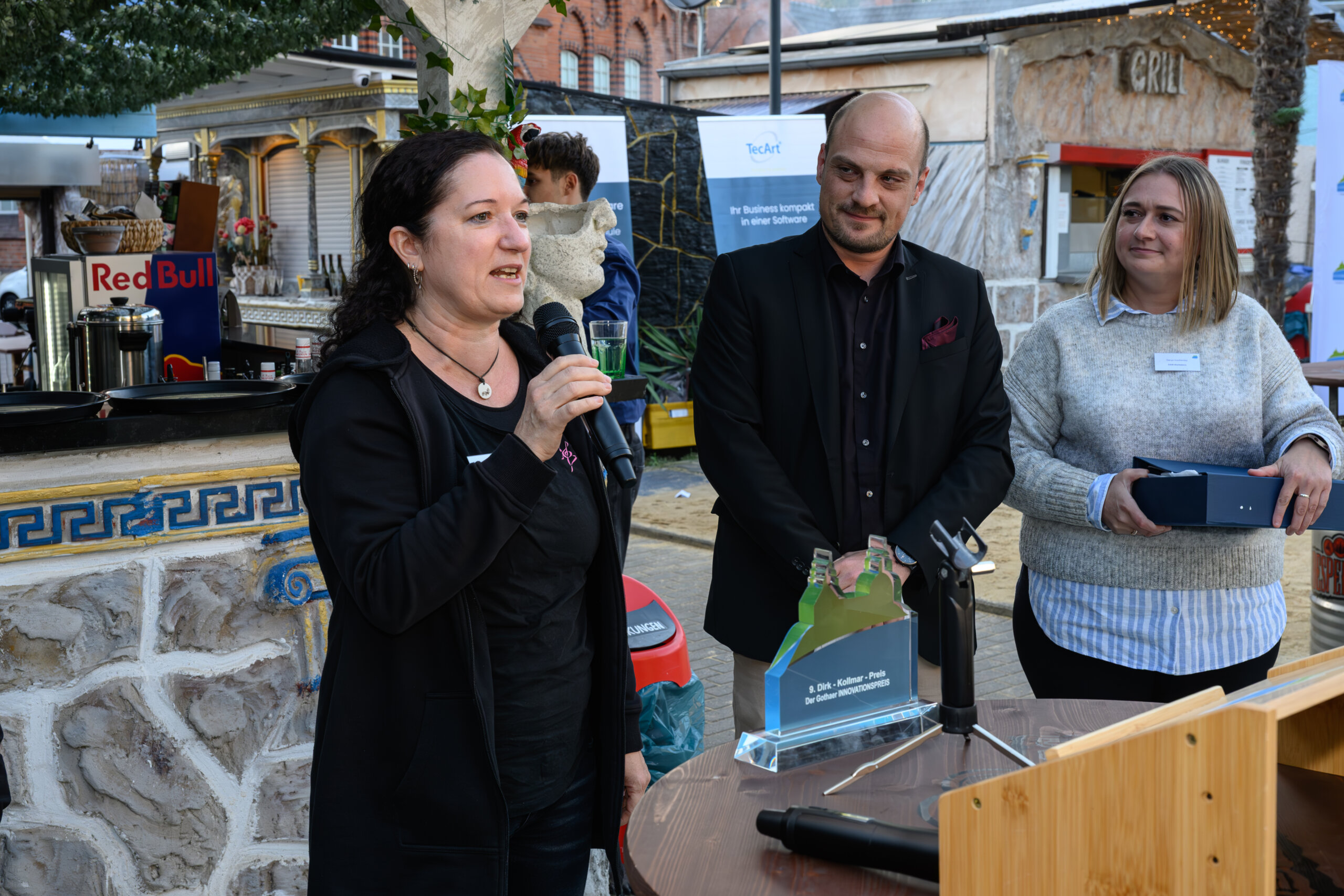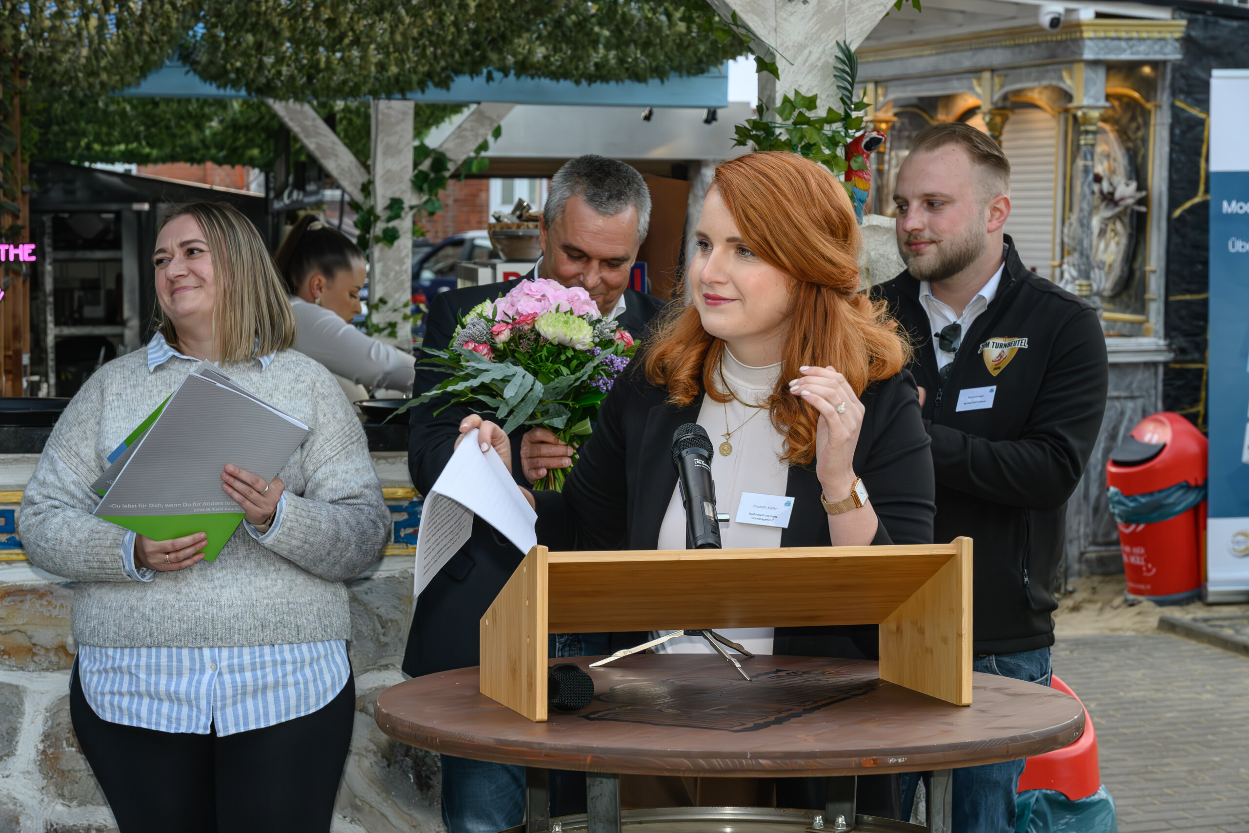 Die Laudatio hielt die Beigeordnete des Landkreises Gotha, Frau Sylke Niebur, die auch die Urkunden überreichte – unterzeichnet von Landrat Onno Eckert, Oberbürgermeister Knut Kreuch und der Gewerbevereinsvorsitzenden Darya Inochentsy.